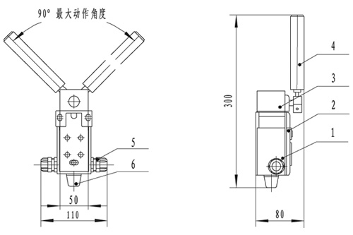 4. 用戶安裝跑偏開關(guān)之前,轉(zhuǎn)動托輥,用萬用表檢測行程開關(guān)接點動作是否正常。