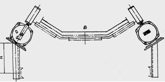 2 .立輥距膠帶機(jī)距離,用戶可根據(jù)現(xiàn)場(chǎng)實(shí)際情況確定,一般選在膠帶自然跑偏量加 50 ~ 100mm 為宜。