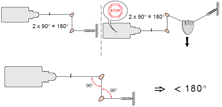 8)強(qiáng)烈推薦安裝末端彈簧。EN418標(biāo)準(zhǔn)要求:當(dāng)使用足夠大朝向開關(guān)的軸向力操作時,開關(guān)應(yīng)動作。如果沒有加裝末端彈簧,如下圖所示,開關(guān)無法朝向開關(guān)側(cè)拉動。