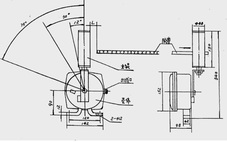 4 .本裝置底座有兩個(gè)∮12’固定孔,用戶用螺栓將其基固定在安裝支架上即可。