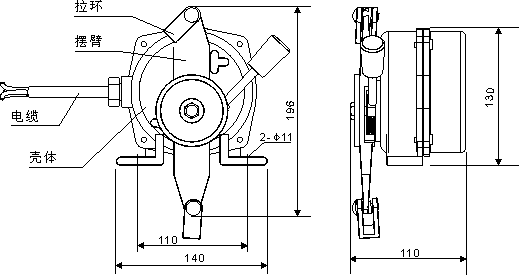 當(dāng)膠帶運輸機現(xiàn)場發(fā)生緊急事故時、可拉動系于擺臂上的鋼絲繩,擺臂旋轉(zhuǎn)而帶動機內(nèi)凸輪并驅(qū)動微動開關(guān)。發(fā)出停機信號。Ⅱ型機是在故障排除后,搬動限位桿方能復(fù)位。